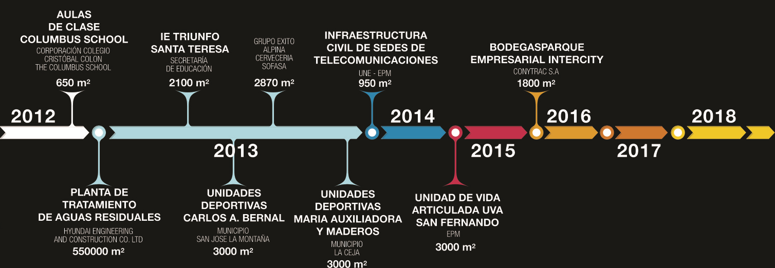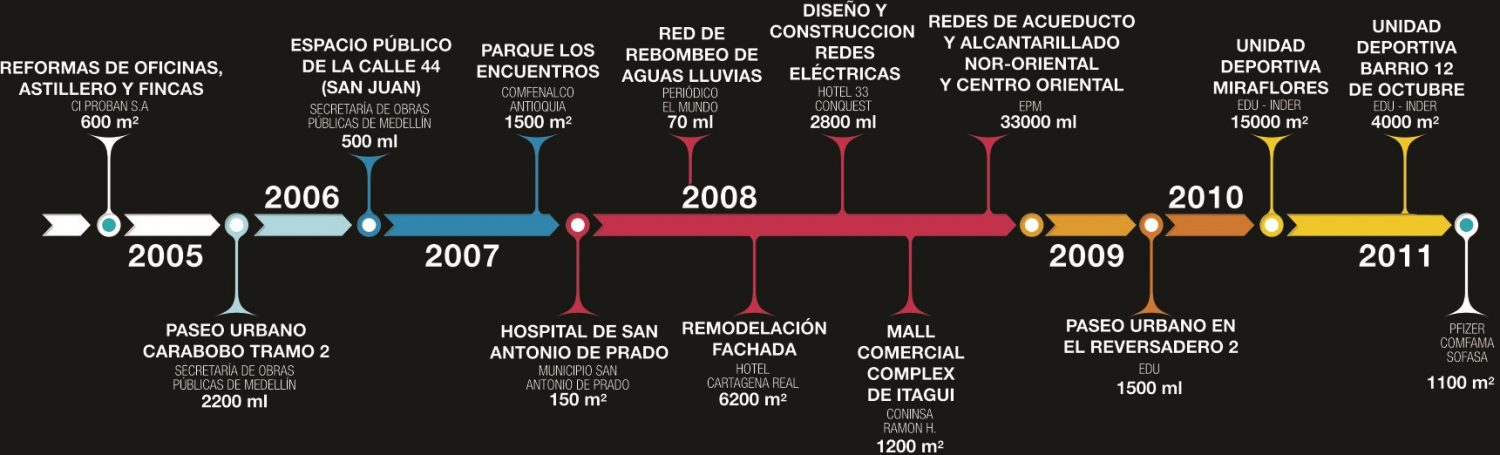 Tenemos en nuestro equipo técnico una trayectoria consolidada desde el año 1999, plasmada en una amplia experiencia en construcción de obras civiles, adecuación y mantenimiento de edificaciones;que ofrecemos ahora a nuestros clientes, clasificada para su información en los siguientes cuadros: